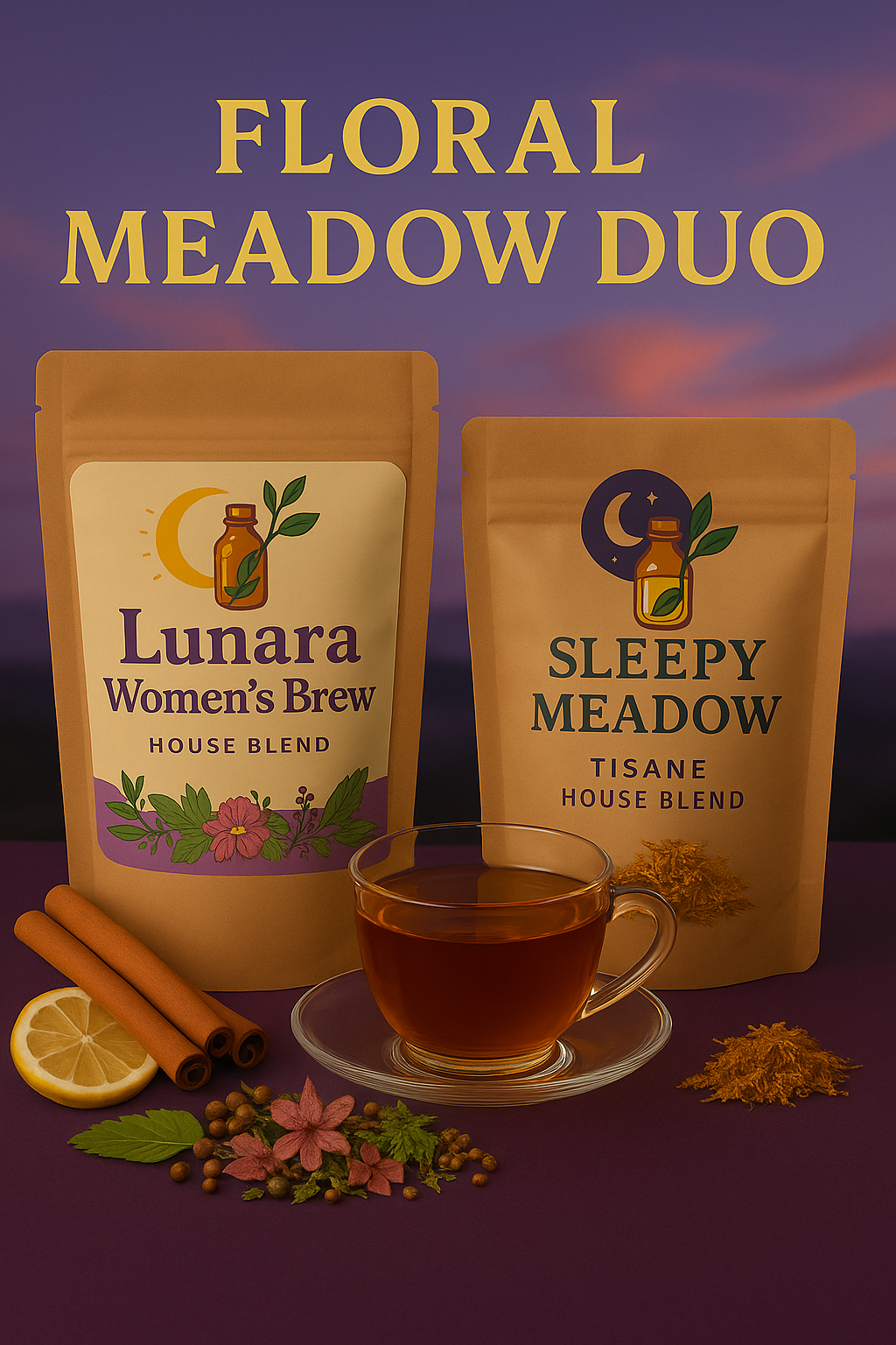 Together, these blends create the ultimate floral duo—one to nourish and balance by day, and the other to soothe and restore by night. Naturally caffeine-free, blended in small batches, and made with apothecary wisdom, the Floral Meadow Duo is your daily ritual for calm, balance, and renewal.
